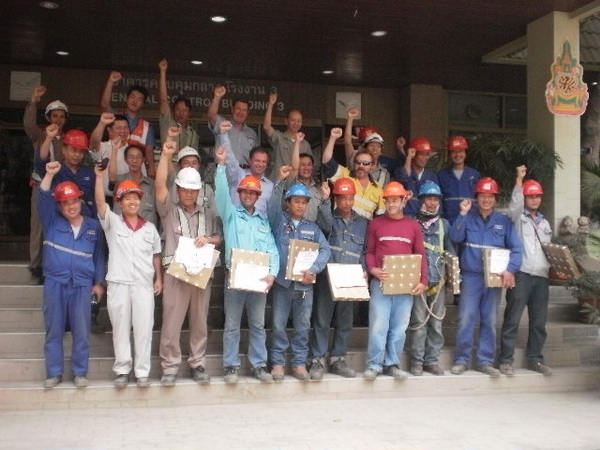 從左到右:SCCC安全顧問Mr. Guy, SCCC項目經(jīng)理Mr. Prapan, SCCC董事長Mr.Philip,中材節(jié)能京都項目部項目經(jīng)理侯躍光,SCCC顧問Mr. Bill,SCCC 安全隊長Mr. Sumrit,中材節(jié)能京都項目部現(xiàn)場經(jīng)理江向東。